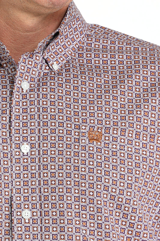 Cinch Men's Long Sleeve Western Shirt - Purple, White & Rust Geometric Print