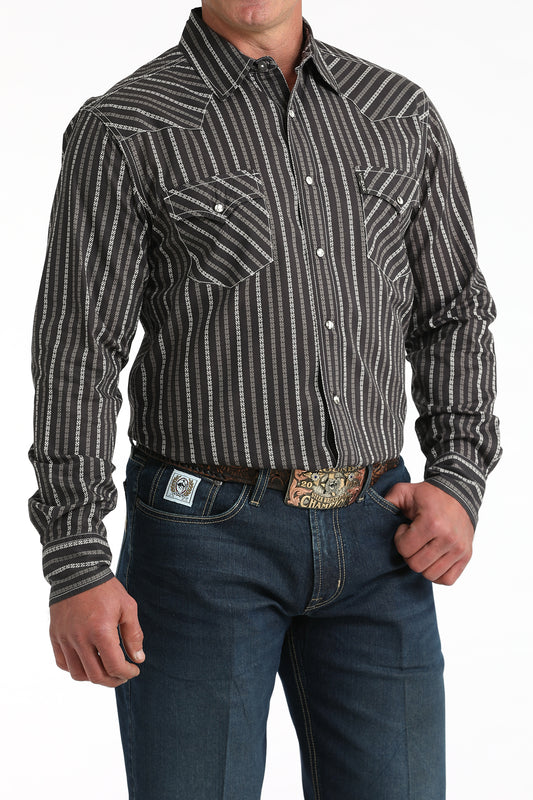 Cinch Men's Long Sleeve Western Shirt - Black and White Geometric Print