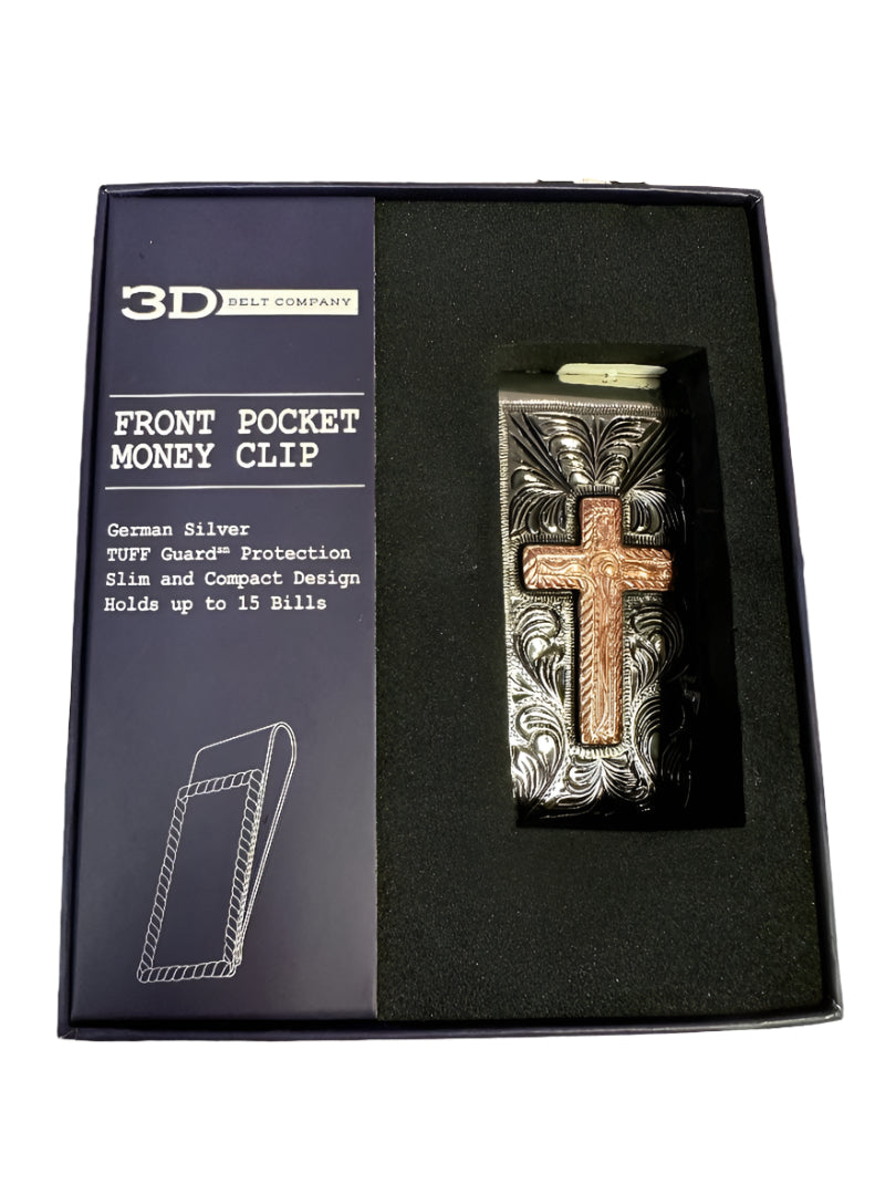 3-D Belt Company Men's German Silver Money Clip with Copper Cross