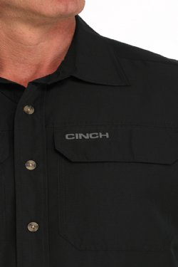 Cinch Men's Long Sleeve Ripstop Solid Button-Down Western Shirt - Black