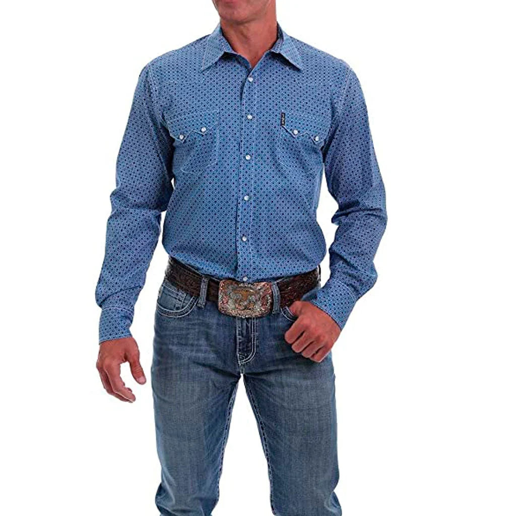 Expertly crafted for a contemporary fit, the Cinch Men's Long Sleeve Shirt boasts a bold geometric print in navy, blue, red, and white. Made with quality materials, it offers both style and comfort. Elevate your wardrobe with this versatile piece.