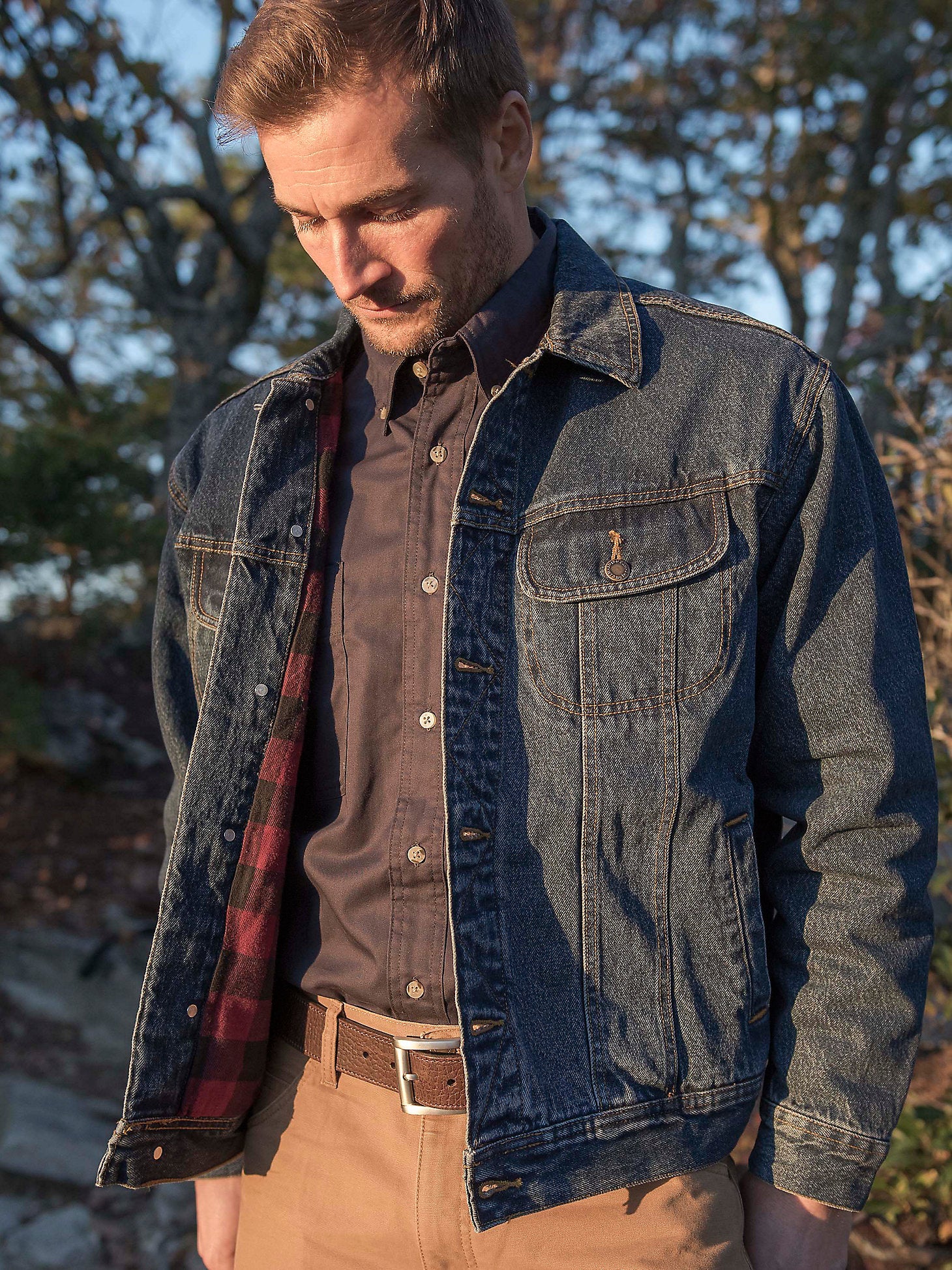 Your go-to piece when the days are crisp and the nights are cool. It's made with durable reinforced construction, a handy adjustable waist, and a button front. This denim jacket has brushed flannel lining throughout the body and sleeves for all day comfort and unbeatable warmth.