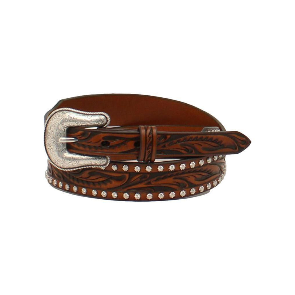 Nocona Western Belt Women's Floral Embossed Leather Studs