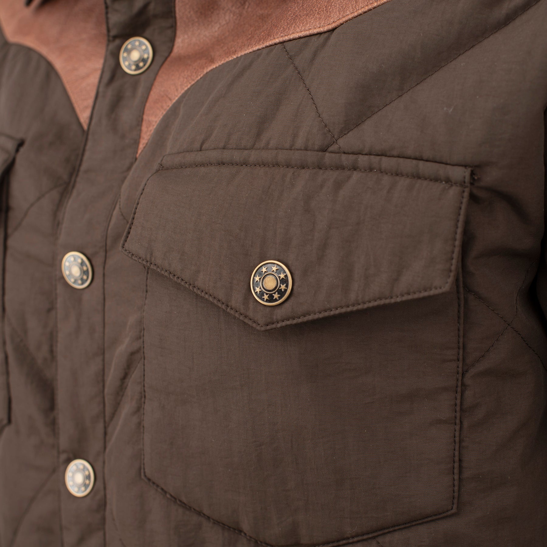 Our work shirt jacket is durable, functional, and timeless. Insulated to keep you warm in the cold temperatures. Quilted details and a classic genuine leather yoke for that cowboy look. Designed for the ranch or a night out on the town.