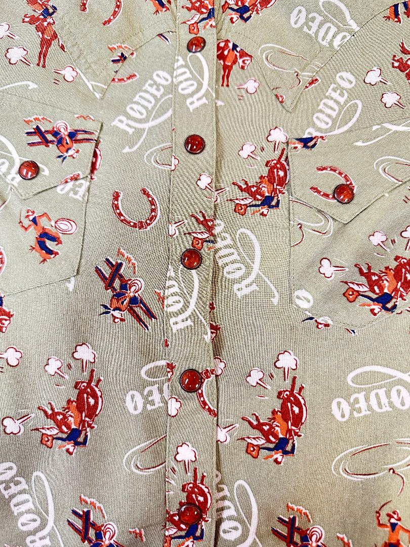 Cruel Denim Women's Long Sleeve Shirt - Green Rodeo Print with Snaps