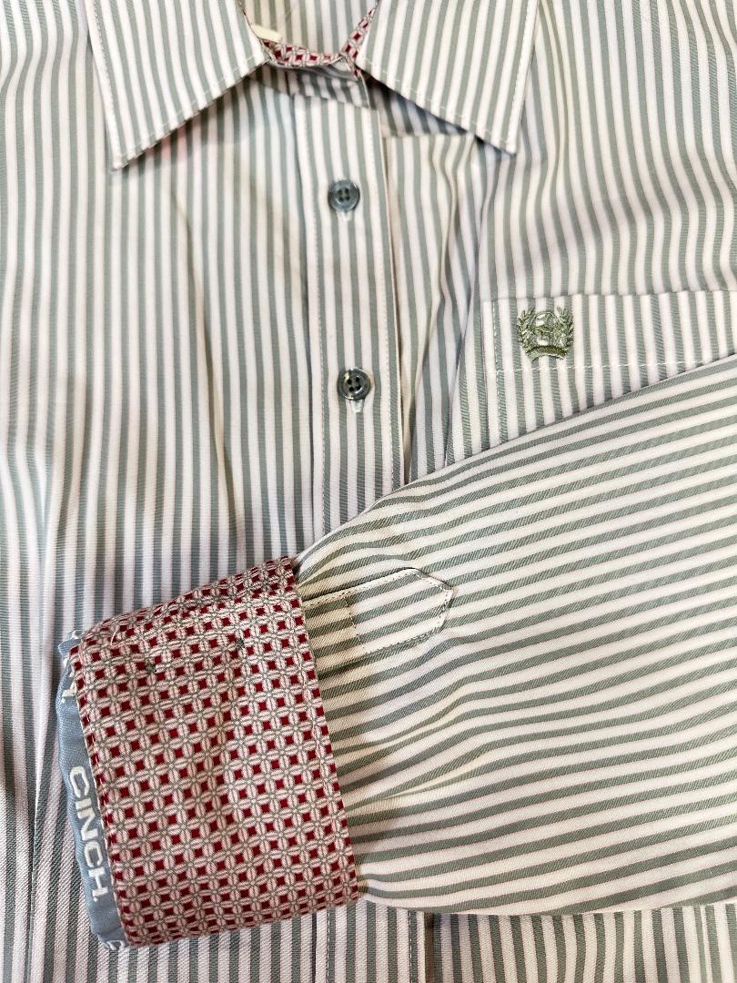 Embrace classic Western style with the Cinch Women's Long Sleeve Shirt in Grey & White Stripe. This comfortable and durable shirt features a timeless striped pattern, perfect for everyday wear or rodeo nights. Its long sleeves offer protection and style, while the tailored fit ensures you look sharp wherever the day takes you. A reliable choice for the modern cowgirl who values both fashion and function.