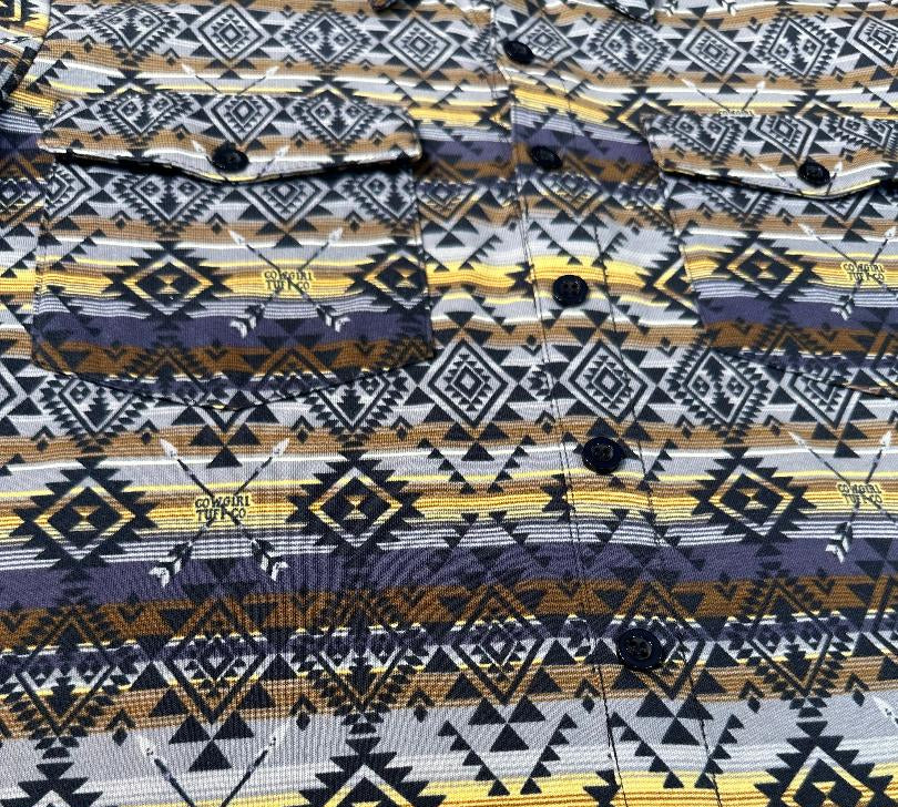Embrace your western spirit with the Cowgirl Tuff Women's Long Sleeve Shirt in Blue Aztec Print. This durable, stylish shirt combines classic cowgirl toughness with a bold, eye-catching design. Perfect for rodeos or everyday wear, its long sleeves offer comfort and protection while showcasing vibrant colors inspired by authentic Aztec patterns. Stay rugged and fashionable on every adventure.