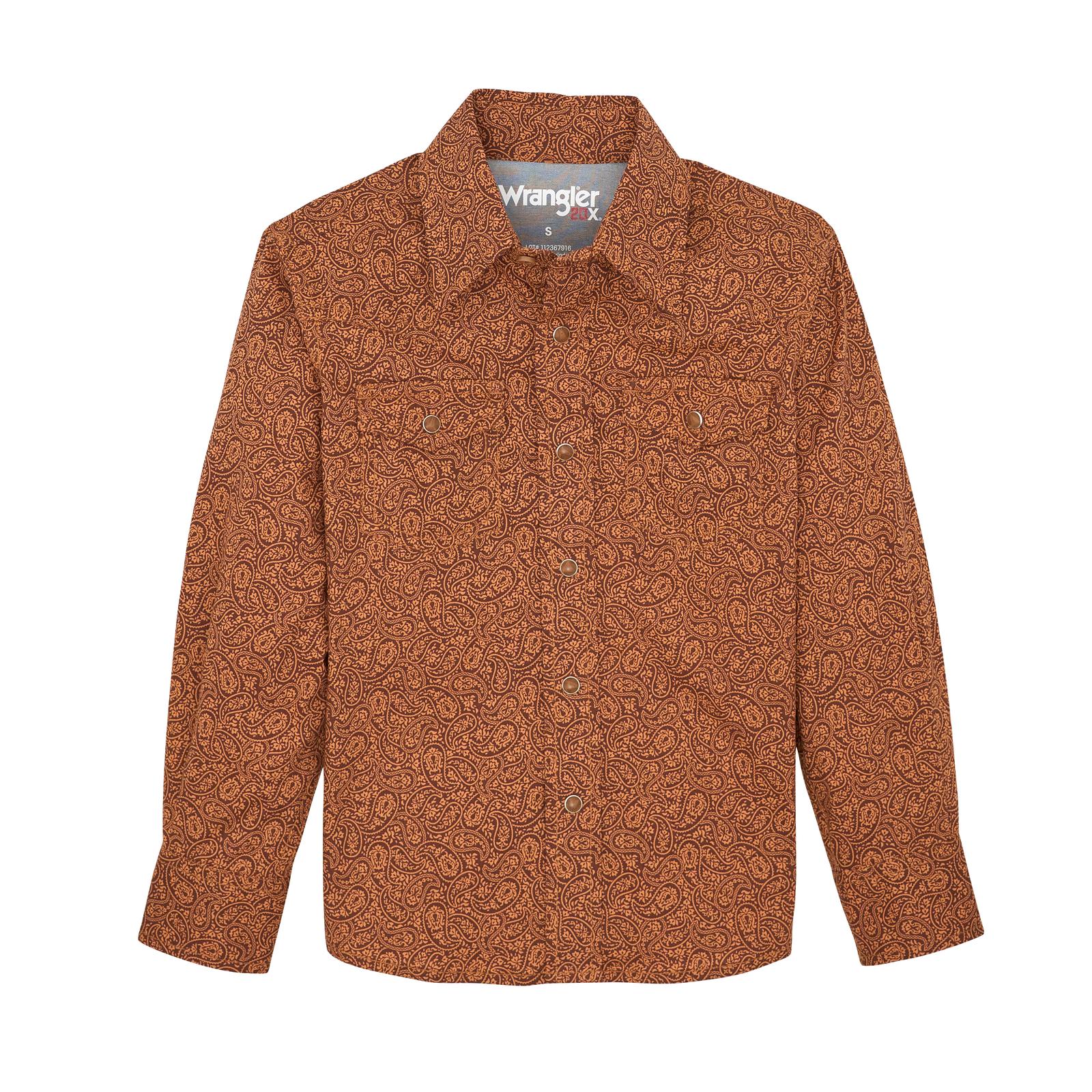 Wrangler Boys 20X Advanced Comfort Long Sleeve Shirt - Rustic Brown Print