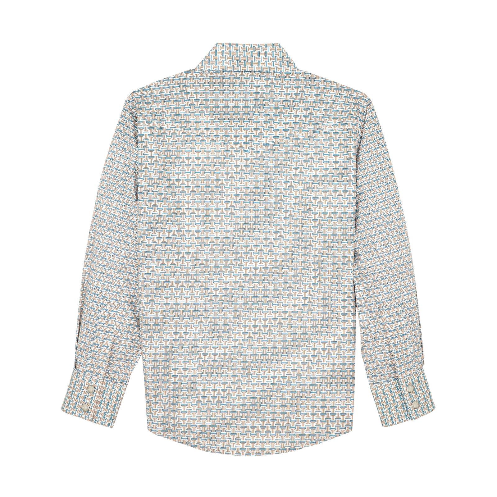 Wrangler Boys 20X Advanced Comfort Long Sleeve Shirt - Rustic Brown & Teal Print