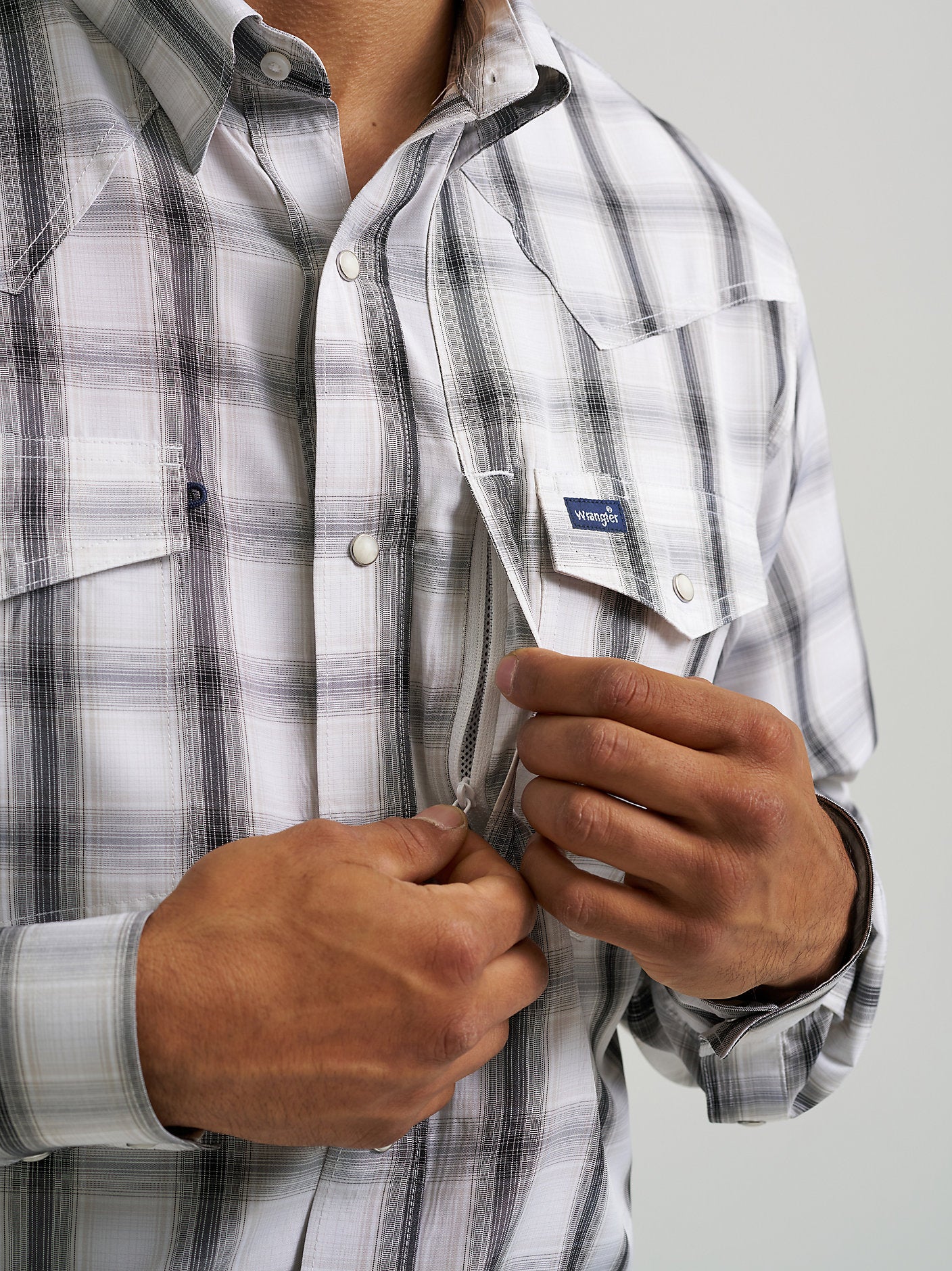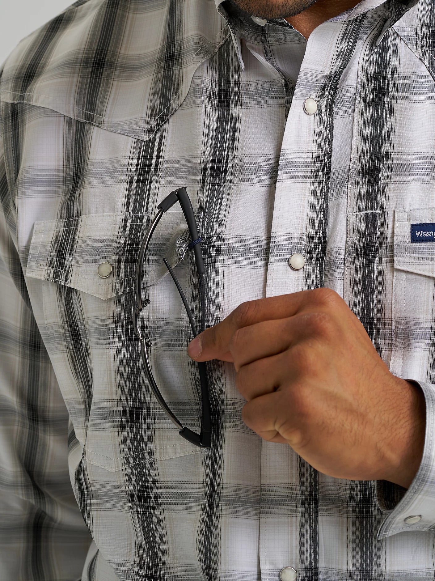 Wrangler Men's Performance Snap Long Sleeve Shadow Gray Plaid Shirt